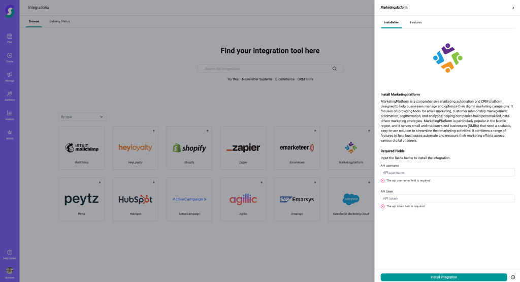 For native integrations, simply fill in the fields: API Username and API Token. You can find these details in the specific system’s integration toolkit.