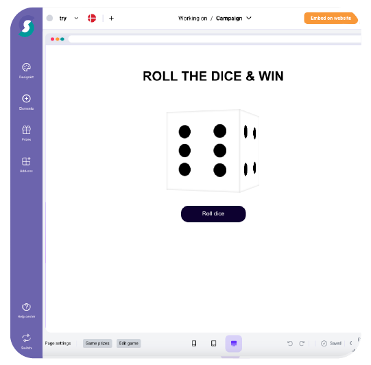 - Flexible Journey: Das Würfelspiel in Ihre gesamte Kampagne einbetten – auf Gewinnseiten, als Trostpreis, in E-Mails und mehr.