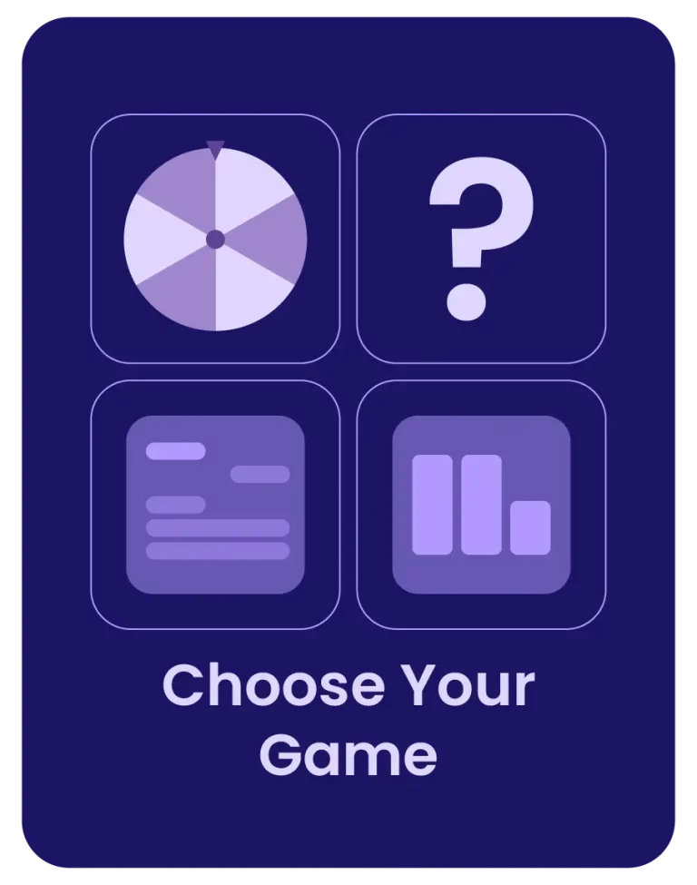 Pick from a wide range of ready-made game templates designed for events. Start fast with proven formats or customize the experience to match your goals.